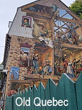Our guide loved her city, and it showed in the presentation as we walked both lower and upper city. We viewed the remnants of ramparts and fortifications as well as the places matched with names like Champlain. As the old city rebuilds itself, artists have painted historically based murals on the blank brick of buildings, telling parts of the history of the old city. We took the funicular (cog rail) from lower to upper city and found ourselves on the broad plaza that was built atop the ruins of the old French fortifications. Overlooking the plaza is the Chateau Frontenac, the luxury hotel that hosted Roosevelt and Churchill as they discussed the North African and Normandy landings during WWII. Statues of French explorers, priests, and nuns were distributed throughout, along with the historic structures that they left behind.